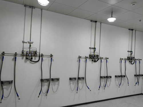 3.5N氦氣、氦氣、預定氣主要線所使用OD1/4”(6.35mm)的通風供水管道,支線所使用OD1/4”(6.35mm)的通風供水管道。用焊接加工三通接頭并成支路來對機械設備通過供汽。